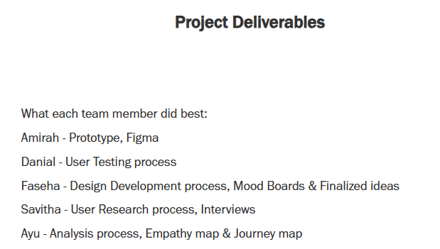 3. Working on this project has strengthened my appreciation for user-centered design. I learnt that understanding your customer through surveys, interviews, and testing is important to create features that directly addressed target user's needs. Seeing how users reacted positively to the additions we implemented based on their suggestions taught me the importance of actually listening to your audience. This knowledge has influenced how I approach future projects, ensuring that I always design with evidence, empathy, and the end user in mind.