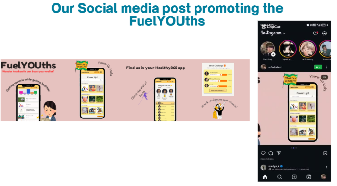 1. Following our survey results, I suggested incorporating relatable, meme-based material into our social media marketing plan. The statistics revealed that young people are particularly drawn to comedy and trends on the internet. I suggested using funny or trendy memes to promote FuelYOUths on an Instagram post. This made our communication efforts more authentic and engaging, boosting the possibility of students sharing or interacting with the content. I provided example post ideas that were relevant to youth culture, making the campaign more effective.